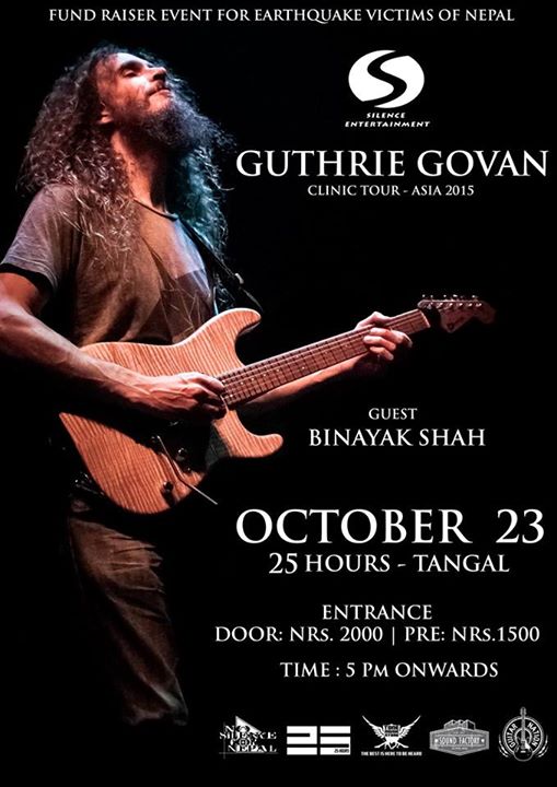 It has been confirmed, celebrated guitarist Guthrie Govan will be here in Kathmandu, Nepal on October 23, 2015. The show is hosted by Silence Entertainment and all the funds raised from the event will go to “No silence for NEPAL association”. The fund collected will utilize for building shelters in earthquake effected area.